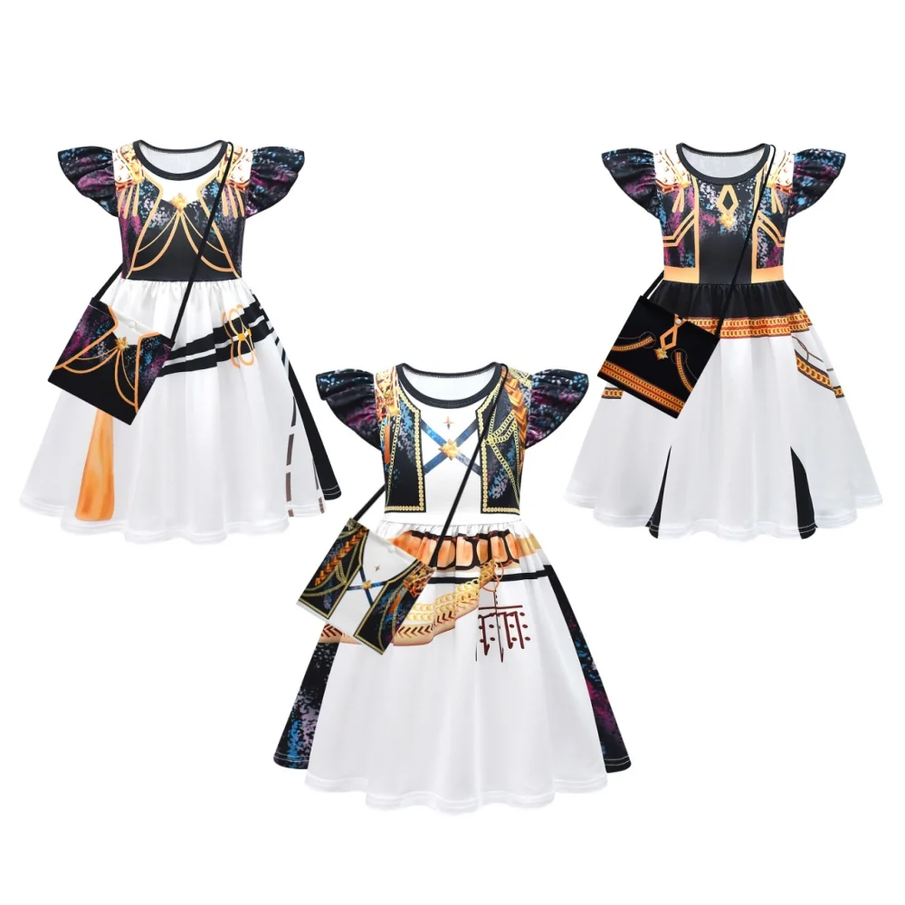 Kids Children KPop Demon Hunters (2025) Huntrix Rumi Mira Zoey Printed Black White Dress Outfits Cosplay Costume